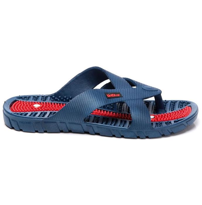 Acupressure Slipper Magnet and Accu Points Unistar Acupressure Slipper is designed to facilitate accupressure therapy, magnetic therapy and reflexology. It helps in relieving pain and pressure in the foot. It helps in using accupressure to relieve stress and pain in the rest of the body.