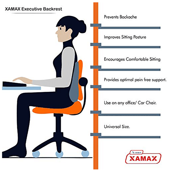 Amron Xamax Executive Backrest Amron Xamax Backrest helps to provide relief in the case of backache by correcting the sitting posture. Moreover, it can be used on executive and car seats. It acts as a back rest for office chairs and can be used by aged people for back support.