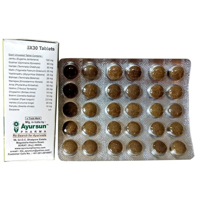 Ayursun Pharma Madhusudan Kalp Tablet is a herbal tablet from ayursun pharma company which effectively overcomes fatigued, urination and excessive thirst and tones up the body. It tones the function of the eyes and kidneys. | Key Ingredients: Mixed ayurvedic herbs | Key Benefits: It contains antioxidant, cardioprotective properties It helps in overcomes fatigue, urination and excessive thirst and tones up the body It tones the function of eyes and kidneys | Directions For Use: Use as directed on the label or as advised by your healthcare provider. | Safety Information: Read the label carefully before use Store in a cool and dry place away from direct sunlight Keep out of reach of children