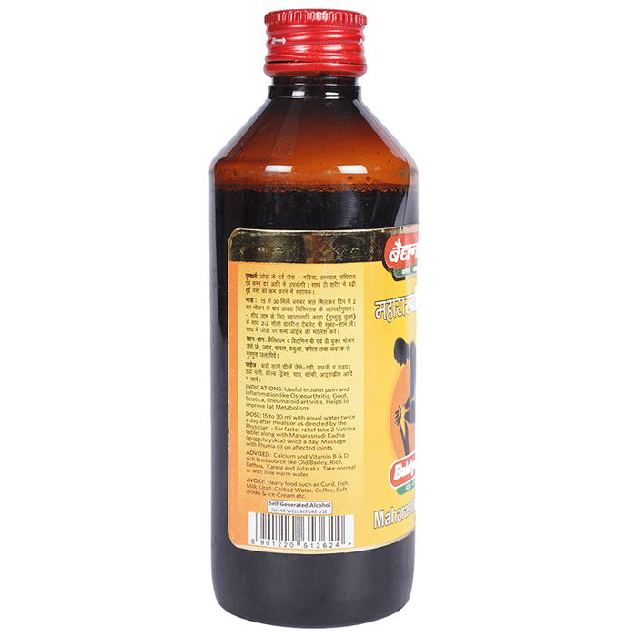 Baidyanath (Jhansi) Maharasnadi Kadha Special with Guggulu Baidyanath (Jhansi) Maharasnadi Kadha is an excellent Ayurvedic remedy for lumbago, rheumatism and sciatica. It helps provide relief from a variety of joint pains and reduces stiffness and swelling. It may also relieve muscle stiffness.