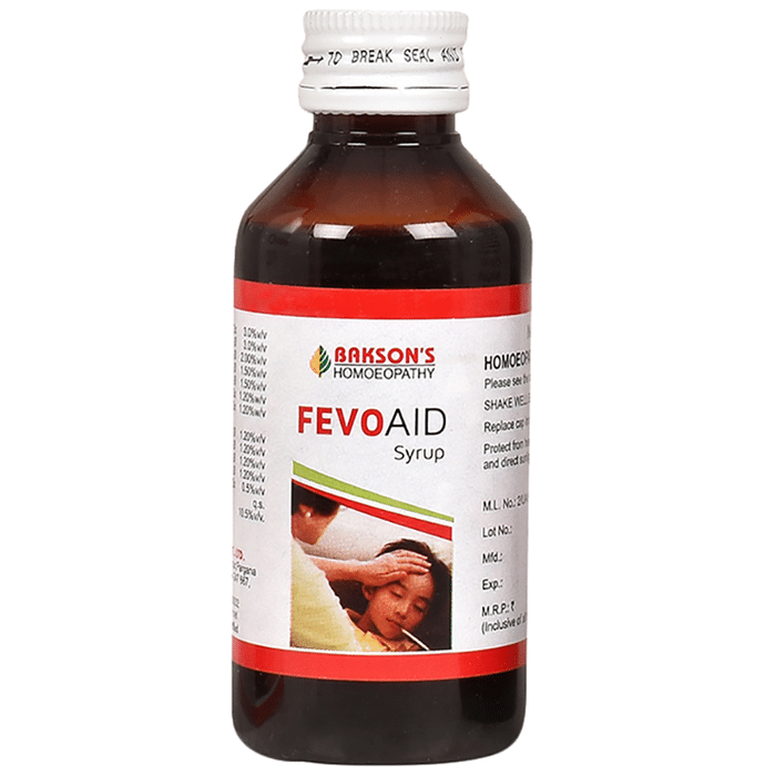 Bakson's Fevo Aid Syrup Bakson's Fevo Aid Syrup is a homeopathic medicine that helps to reduce the fever and treats the temporary increase in body's temperature, above the normal 98.6F(37C), in response to some disease or illness. It forms an important part of the body's defense against infection.