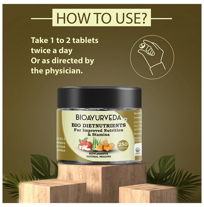 Bioayurveda Bio Dietnutrients Tablet Bioayurveda Bio Dietnutrients Tablet helps you to exercise harder and enhances your workout by releasing clean energy throughout your workout. It helps you improve your physique and help to push yourself to your limits. It is potent in burning fats that help convert stored body fat to fuel by transporting stored fat to the muscle where it can be burned as energy. This helps muscle growth and weight loss and helps you get lean faster.