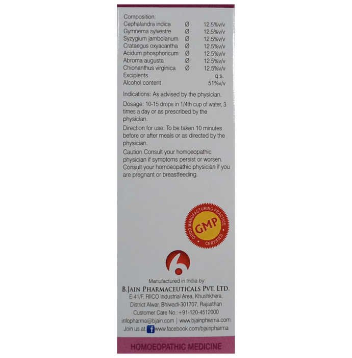 Abroma auguta | Acidum phophoricum | Syzygium jambolanum | Cephalandra incica | Gymnema ylvetre | Helonia dioica