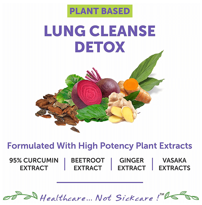 Bliss Welness Lung Detox Veg Tablet It is a dietary supplement formulated with curcumin, vasaka, stinging nettle, beetroot, ginger and arjuna to support your lung health. Its antioxidant and anti-inflammatory properties promote lung rejuvenation and improve immunity. It also helps to cleanse the lungs and flush out toxins from it. | Key Ingredients: Curcumin Vasaka Stinging nettle Beetroot Ginger Arjuna | Key Benefits: It is a dietary supplement formulated with ayurvedic herbs to support your lung health Its antioxidant and anti-inflammatory properties promote lung rejuvenation and improve immunity It also helps to cleanse the lungs and flush out toxins from it Curcumin in turmeric helps in cleansing the lungs naturally and helps in detoxification of the body, which further helps in strengthening the immunity Vasaka assists in suppressing cough, loosening phlegm, thinning bronchial secretions and improving sluggish lung function Ginger can reduce the lung damage and protect the lungs from damage due to inflammation | Directions For Use: Take two capsules daily after meals or as directed by your physician | Safety Information: Read the product label carefully before use Store in a cool and dry place away from direct sunlight Keep out of reach of children Consult a doctor before taking any supplement Do not exceed the recommended dosage Pregnant or nursing mothers, children, and people with medical conditions must consult a physician before taking this supplement Do not use if the product appears to be tampered with or the seal is broken