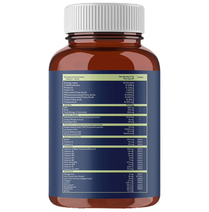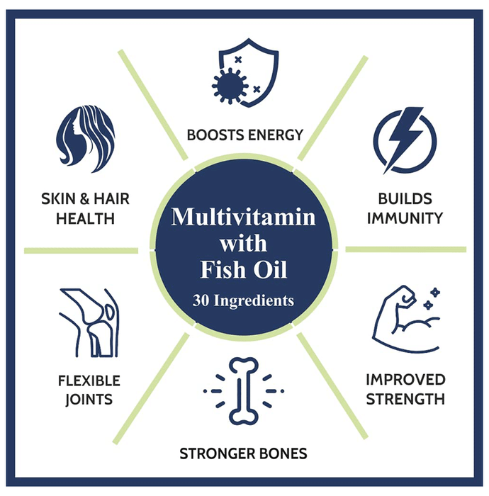 Carbamide Forte Multivitamins with Fish Oil Softgel Capsule is a rich natural source of omega-3 that includes the nutrients EPA and DHA. It helps to maintain the growth, vision and tissue development. It contains essential fats including EPA (Eicosapentaenoic Acid) and DHA (Docosahexaenoic Acid). They have been shown to support overall wellness, including heart, brain, joint, and eye health. Research has shown Omega-3 products to support healthy glucose levels and healthy lipid levels in professional athletes. | Key Ingredients: Omega-3 | Key Benefits: It helps to build a strong immune system It promotes proper functioning of the brain The product aims to provide healthy bones It assists in maintaining the eyes' health | Directions For Use: Use as directed by the physician. | Safety Information: Not to be used by children below 5 years of age These statements are not evaluated by the FDA These products are not intended to diagnose, cure, treat or prevent any disease If you are pregnant or lactating or taking any prescriptive medication, or have strong allergies, please consult your healthcare professional prior to using these products Read the label carefully Store in a cool and dry place Keep out of the reach of children