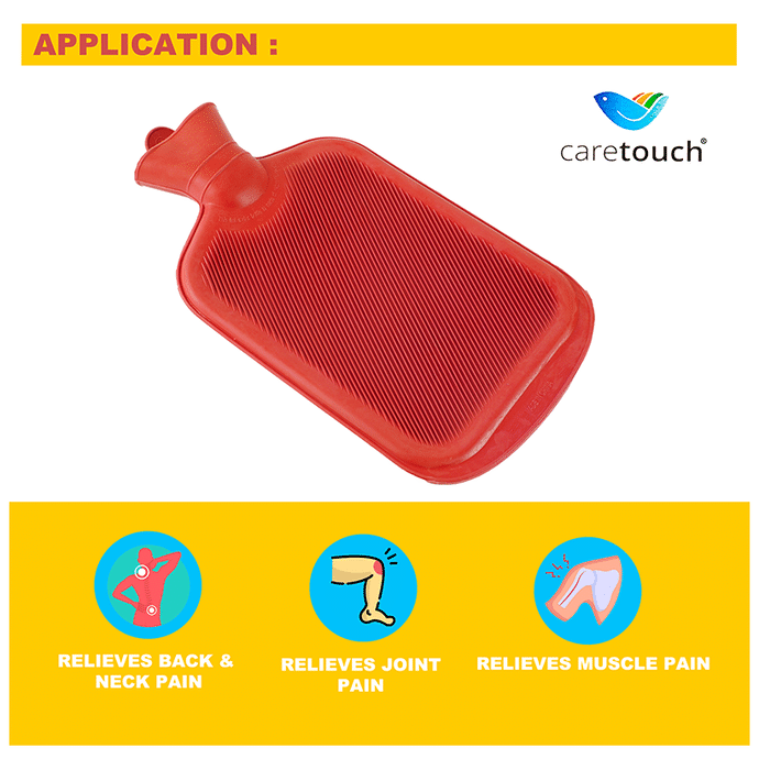 Caretouch Delux Non Electrical Hot Water Bag with Red Cover helps in providing relief from all kinds of muscular pain and provides the best heat therapy for strained and tired muscles. The Hot water bag is a useful companion for athletes, sportspersons and physical trainers. | Uses: It is used to provide relief from all types of body pain | Product Specifications and Features: It is beneficial for aches due to the cold climate It may give relief from pain and makes you feel comfortable Soft fibre provides comfort and full coverage of the injured area Provides instant relief from muscular and menstrual pain | Directions For Use: Use as directed on the label or as advised by the physician | Safety Information: Read the label carefully before use Store in a cool dry place away from direct sunlight Keep out of reach of the children Avoid physical damage