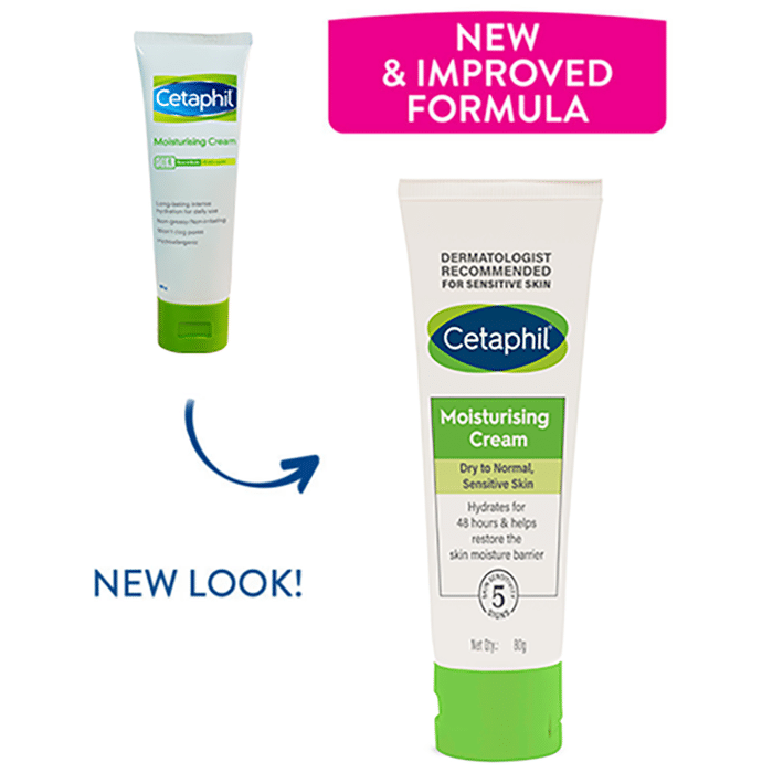 Cetaphil Moisturising Cream Dry to Normal, Sensitive Skin Cetaphil Moisturising Cream Dry to Normal, Sensitive Skin is a potent blend of emollients and humectants that can help provide intense moisture. It can aid in binding water to the skin and keep it hydrated. The cream can help manage dry and sensitive skin and protect it from arid skin conditions. It has a non-greasy texture, and its soothing composition is beneficial for nourishing your skin.