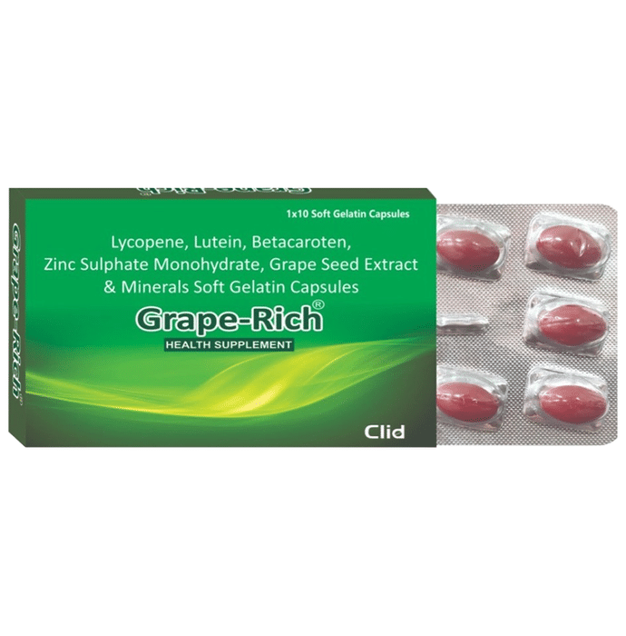 Clide Grape-Rich Soft Gelatin Capsule Clide Grape-Rich Soft Gelatin Capsule helps in strengthening bones and increasing bone density. These tablets have almost double the number of vitamins compared to other supplements, resulting in better calcium absorption. It aids in the reduction of weariness and the enhancement of general health. One can take this supplement daily and experience 365 days of improved energy, immunity and overall health. It also contains added digestive enzymes to ensure higher absorption of macro and micronutrients.