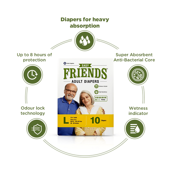 Combo Pack of Friends Easy 10 Adult Diaper, Large & Nivea Creme 200ml Friends Easy Adult Diaper Large (Nobel Hygiene Ltd)