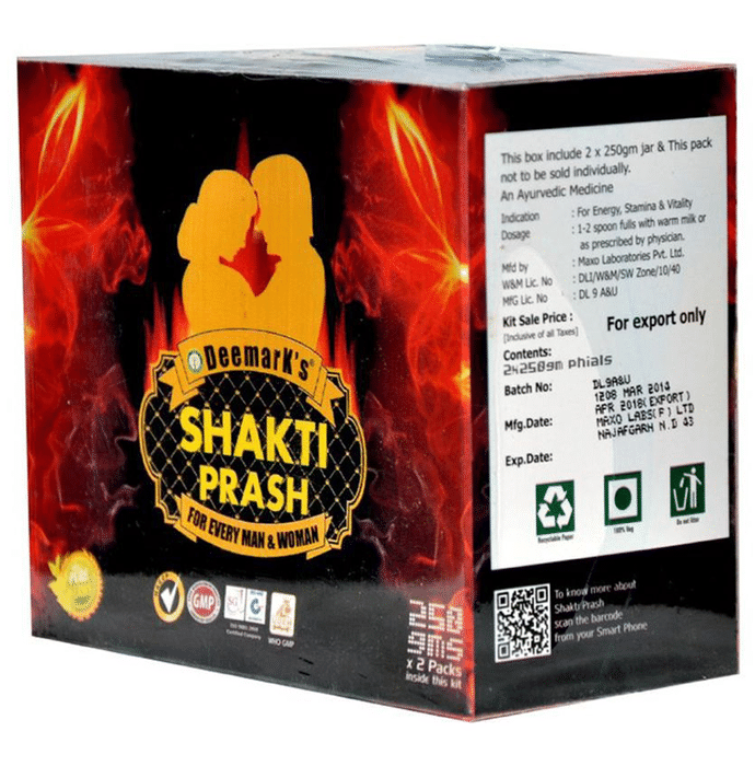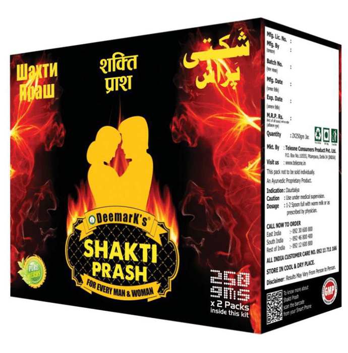 Deemark Shakti Prash 250gm Each Deemark Shakti Prash is a herbal supplement for men and women. It is useful in ailments such as erectile dysfunction and impotence problems in men. It helps to maintain erection for longer time and hence improves sexual performance. It increases Luteinizing hormone level that in turn stimulates testosterone production by body. This hormone is required to improve sexual desire and performance by men. It fights lethargy and weakness in body and is also recommended for sexual wellness.