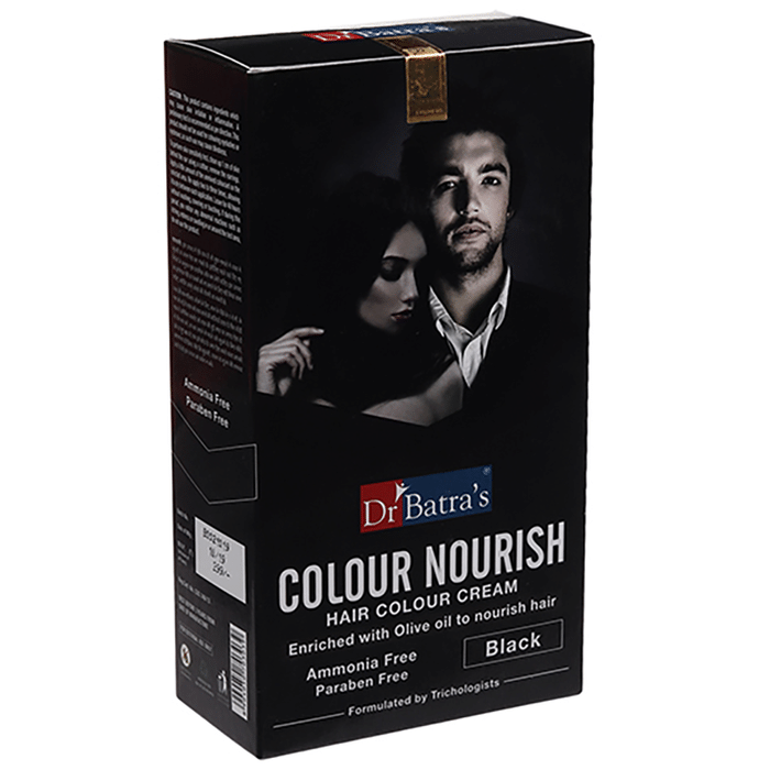 Dr Batra's Combo Pack of Colour Nourish Hair Colour Cream Dr Batra’s Colour Nourish Hair Colour Cream gives your hair complete coverage. It is ammonia-free and comes in natural-looking shades of black, brown and burgundy. Natural extracts of Thuja, Amla and olive oil make this one of the best hair colour creams. The combination of natural extracts provides a vibrant finish while also revitalising hair from the root and leaving it feeling soft and shiny. It brings you the ease of colouring your hair in the comfort of your home. So go ahead and infuse the colour you like with the nourishment your hair deserves. | Key Ingredients: Henna extract Amla extract Bhringraj extract Aloe vera Thuja extract Propylene glycol Light liquid paraffin oil Cetostearyl alcohol Olive oil Sodium silicate | Key Benefits: Lawsonia inermis, Amla extract and eclipta alba extract strengthen the hair follicles while adding natural shine and volume Olive oil provides deep conditioning and reduces any scalp irritation covers grey hair effectively and adds a natural shine to the hai Its herbal ingredients act as natural agents to protect hair adding shine and lustre | Directions For Use: Use as directed on the label or as advised by your healthcare provider | Safety Information: For external use only Keep out of the reach of children Store in a cool and dry place away from direct sunlight