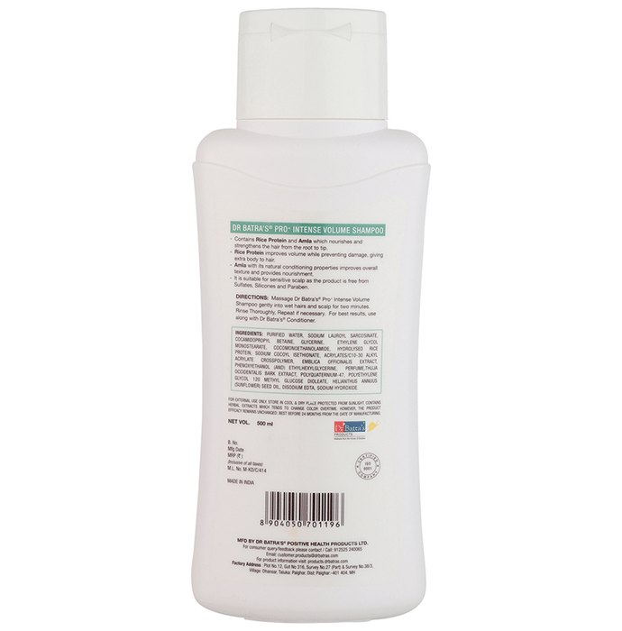 Dr Batra's Combo Pack of Hair Vitalizing Serum 125ml, Hair Fall Control Oil 200ml and Pro+ Intense Volume Shampoo 500ml Dr Batra's Combo Pack of Hair Vitalizing Serum, Hair Fall Control Oil and Pro+ Intense Volume Shampoo Dr Batra's Hair Vitalizing Serum is a blend of natural extracts like Thuja occidentalis which helps to inhibit DHT thus reducing the risk of hair loss. Hops, rich in vitamins and amino acids help in hair growth. Ginseng, known for its rejuvenating properties, strengthens hair follicles and increases blood circulation to the scalp. Dr Batra's Hair Fall Control Oil is a specially formulated non-sticky hair oil with natural ingredients like Thuja, Brahmi and Tulsi extracts to control hair fall. Thuja occidentalis (white cedar) helps to inhibit DHT thus reducing the risk of hair loss. Brahmi provides deep nourishment and enhances overall hair texture. Dr Batra's Pro+ Intense Volume Shampoo, is manufactured with natural components. This volumizing shampoo not only adds volume, but also adds shine, making your hair look and feel healthier, fuller, and more nourished.