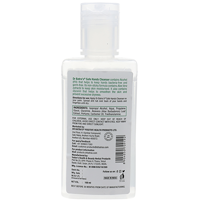 Dr Batra's Combo Pack of Hand Wash 300ml and Safe Hands Cleanser (2*100ml) Dr Batra's Combo Pack of Hand Wash 300ml and Safe Hands Cleanser (2*100ml) provides 10x better protection against germs. Aloe vera extracts contain nutrients, vitamins, active compounds essential minerals and amino acids to keep skin moisturised. It is a non-sticky formula that moisturises the skin.