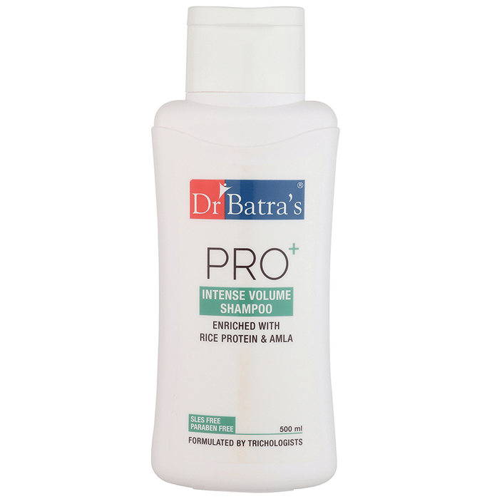 Dr Batra's Combo Pack of Pro+ Intense Volume Shampoo 500ml and Conditioner 200ml Dr Batra's Combo Pack of Pro+ Intense Volume Shampoo 500ml and Conditioner 200ml contains rice protein and amla which nourishes amd strengthens hair from root to tip. Rice improves protein content while preventing damage, giving extra body to hair. It is suitable for sensitive scalp. It is free from sulfates, silicones and parabens.