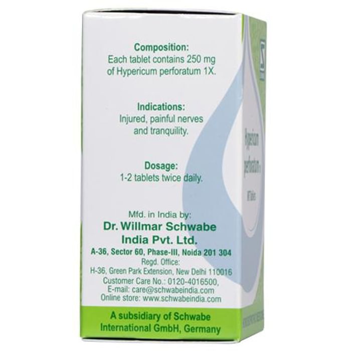 HYPERICUM PERFORATUM 1X TABLET DESCRIPTION The nerve healer Useful in treatment of emotional and nervous complaints Homoeopaths found it useful in nerve injuries, intense headache and pain Studies confirm it as a drug for monotherapy in mild to moderate depressions Has favourable side effect profile and lower rate of drop - outs Also useful in hyperhydrosis and nervousness. Presentation: Bottle of 20gms. Dosage: Unless otherwise prescribed by the physician Adults: 1-2 tablets thrice daily. Children: one tablet thrice daily. If complaints are not relieved, consult a specialist. Side-effects: No side effects of Hypericum perforatum 1X are known. Contra-indications: It has serious interactions with other antidepression drugs. Interactions: No interactions between Hypericum perforatum 1X and other products are known. Use under medical supervision.