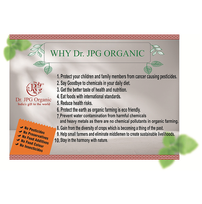 Dr. JPG Organic Stevia Leaves (50gm Each) Dr. JPG Organic Stevia Leaves (50gm Each) is a natural, organic product and is grown without synthetic pesticides, fertilisers, and preservatives. Further, it is processed at USDA Organic, India Organic and ISO-certified facilities and is chemical-free.