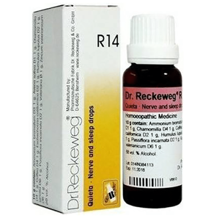 Dr. Reckeweg R14 Nerve And Sleep Drop Dr. Reckeweg R14 Nerve And Sleep Drop is a homoeopathic medicine that can help provide relief for sleep disorders. Ingredients such as Avena sativa and Ammonium bromatum may help improve sleep quality and reduce morning sleepiness.