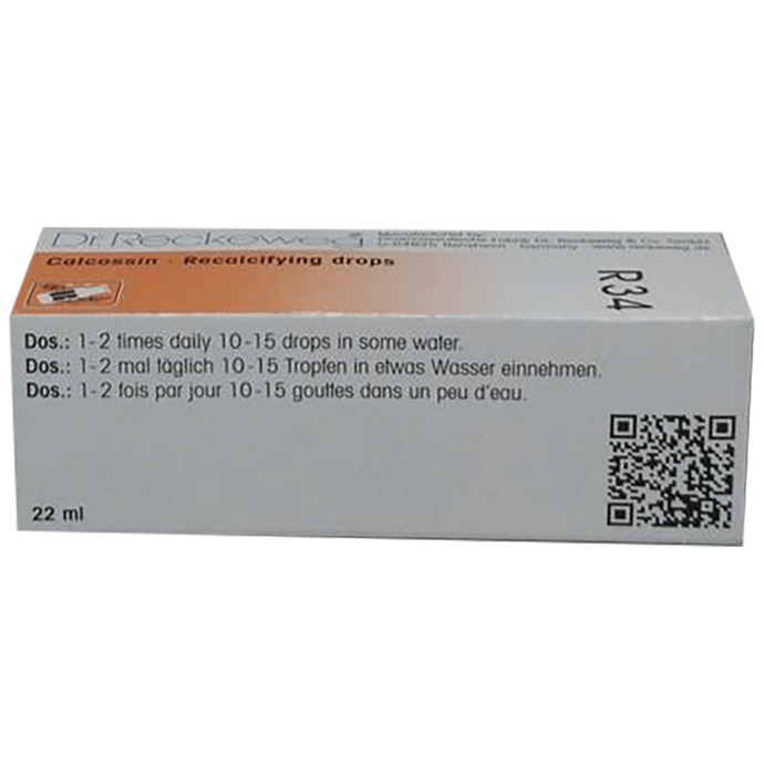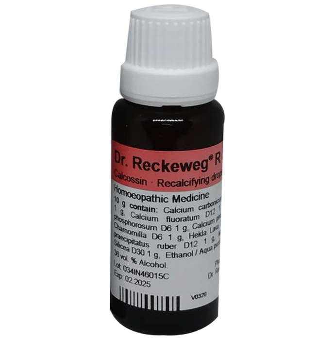 Dr. Reckeweg R34 Recalcifying Drop Dr. Reckeweg R34 Recalcifying Drop can be beneficial for increasing calcium levels in the body. It aids in the treatment of weak bones and in the development of bones. It also helps to strengthen the teeth enamel, alleviates teething problems in children, and relieves bone pain.