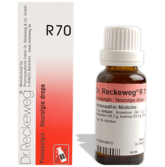Dr. Reckeweg R70 Neuralgia Drop Dr. Reckeweg R70 Neuralgia Drop is a homoeopathic nerve pain remedy that is commonly used in the management of symptoms of trigeminal neuralgia such as numbness along the nerve path, increased skin sensitivity, stabbing and sharp pains, constant burning sensation, muscle weakness and paralysis.