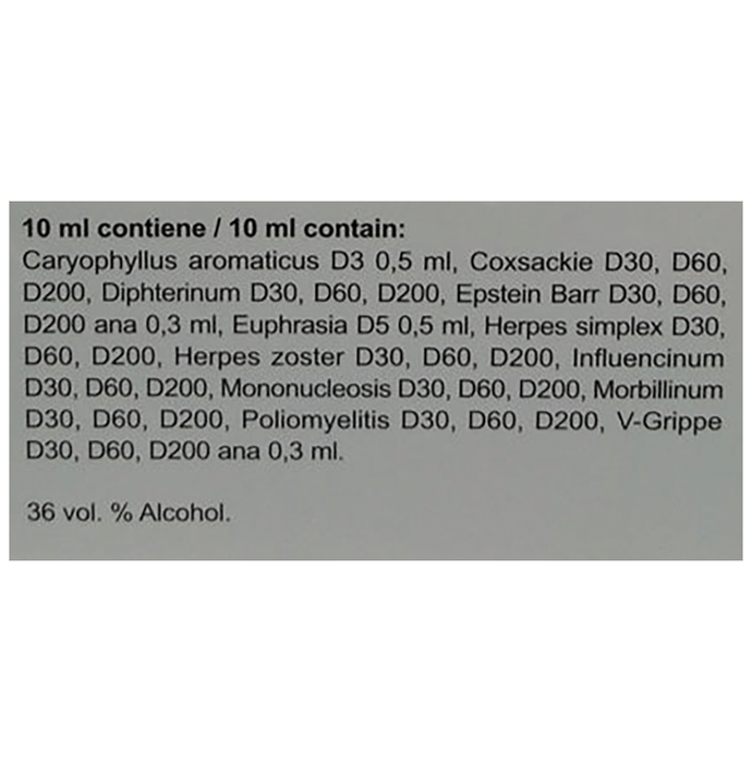 Euphraia | Coxackie | Diphterinum | Eptein barr | Herpe implex | Herpe zoter | Influencinum | Mononucleoi | Morbillinum | Poliomyeliti | V-Grippe