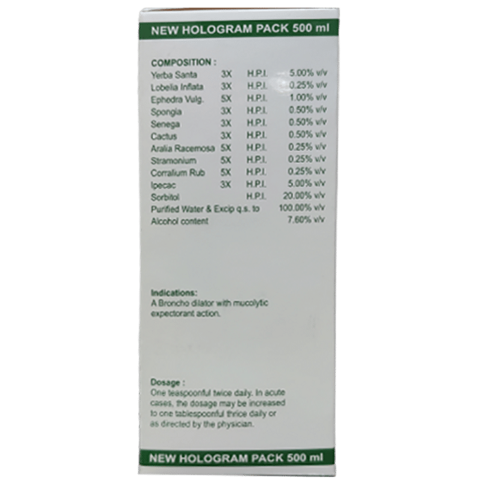 Wellmans Astha+Cure Expectorant is a bronchodilator with mucolytic expectorant action. It clears viscid purulent sputum in acute and chronic asthma, bronchopneumonia, whooping cough, allergic rhinitis, chronic and obstructive pulmonary emphysema, bronchospastic disorder, hoarseness of speech wheezing cough and suffocative cough. | Key Ingredients: Yerb senta 3D Lobelia inflata 3D Ephedra Vulgaris 5D Spongia 3D Senega 3D Cactus 3D Aralia racemosa 5D Stramonium 5D Coralium 5D | Key Benefits: Has a mucolytic expectorant action Clears viscid purulent sputum in acute and chronic asthma, bronchopneumonia, whooping cough, allergic rhinitis, chronic and obstructive pulmonary emphysema, bronchospastic disorder, hoarseness of speech wheezing cough and suffocative cough | Directions For Use: Take 1 teaspoon twice daily In acute cases, the dosage may be increased to 1 teaspoon thrice daily or as directed by the physician | Safety Information: Read the label carefully before use Store in a cool and dry place away from direct sunlight Keep out of reach of the children