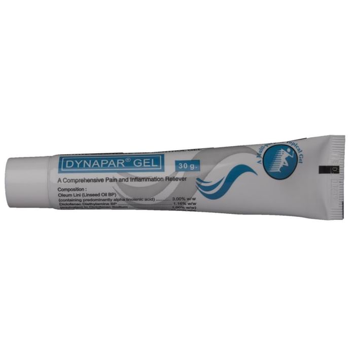 Dynapar Gel contains a unique combination of Diclofenac, Linseed oil, Methyl Salicylate and Menthol . Diclofenac reduces inflammation while Methyl Salicylate and Menthol penetrate deep into the affected area and act as mild analgesics. Dynapar gel is indicated for relief from pain, swelling and inflammation due to arthritis; low back pain, neck pain & shoulder pain, pain due to sports injury (please don’t apply on open wounds, cuts, burns etc), sprains & strains. Dynapar can be applied to the site of local pain 3-4 times a day. Since, Dynapar goes deep to the site of pain in the joints and muscles so it provides quick and effective relief from pain. Children can use Dynapar under supervision of adults to avoid accidental ingestion or Dynapar accidentally being applied to the eyes. Use under medical supervision.