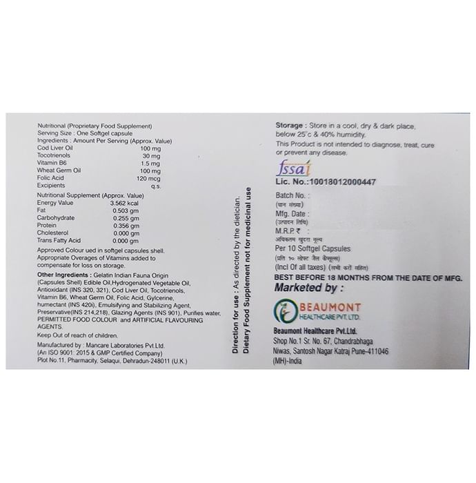 Cod liver oil | Vitamin B6 | Wheat germ oil | Folic acid | Tocotrienol