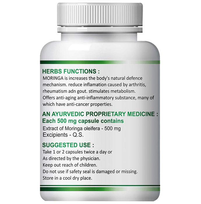Fasczo Moringa 500mg Capsule is a natural supplement to boost energy and nourish the body. It helps in promoting proper digestion and metabolism. It improves blood circulation to the joints, in addition to its anti-inflammatory and analgesic properties. It is naturally abundant in vitamins, minerals and all essential amino acids as well as flavonoids. | Key Ingredients: Extract of moringa oleifera Excipients Q.S. | Key Benefits: It helps our bodies maintain optimum health and balance It also helps to treat and prevent diseases such as diabetes, heart disease, anaemia, arthritis and liver disease This product is rich in vitamins and minerals These capsules help to enhance the immune system of the body | Directions For Use: Use as directed on the label. | Safety Information: Read the label carefully before use Store in a cool and dry place away from direct sunlight Keep out of reach of children