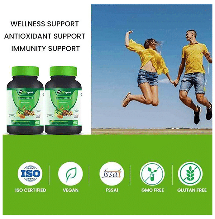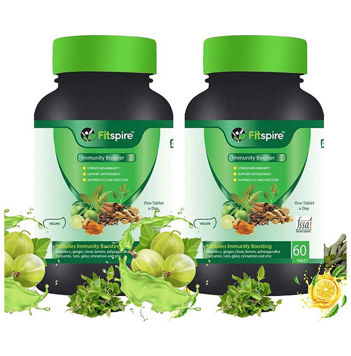 Fitspire Immunity Booster Ashwagandha, Giloy, Tulsi, Ginger, Amla,Turmeric & Zinc Tablet Fitspire Immunity Booster Tablet provides health supplements that support your fitness goals. Since these health supplements are developed using vegetarian ingredients, they prove to be a good addition to your diet and boost your energy levels which helps you to work out more and give productive and efficient results.