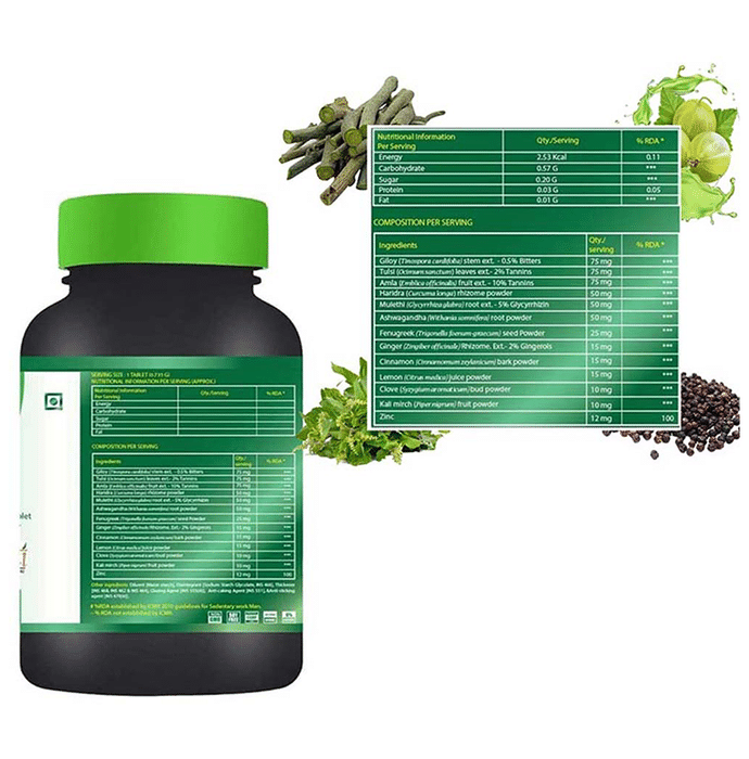 Giloy | Ahwagandha | Tuli | Ginger | Cinnamon | Fenugreek | Zinc | Lemon | Clove | Amla