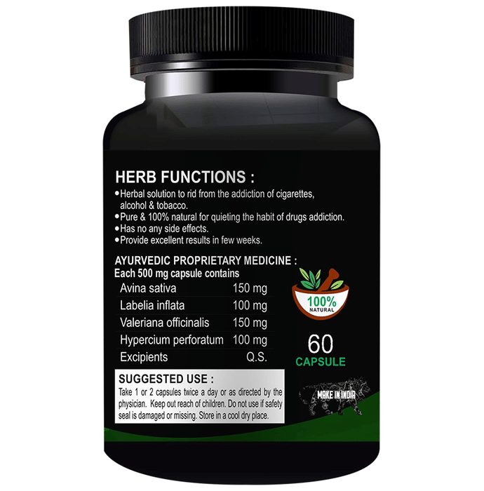 Avina Sativa 150 mg | Lobelia inflata 100 mg | Valeriana officinali 150 mg | Hypercium perforatum 100 mg | Excipient Q.S.