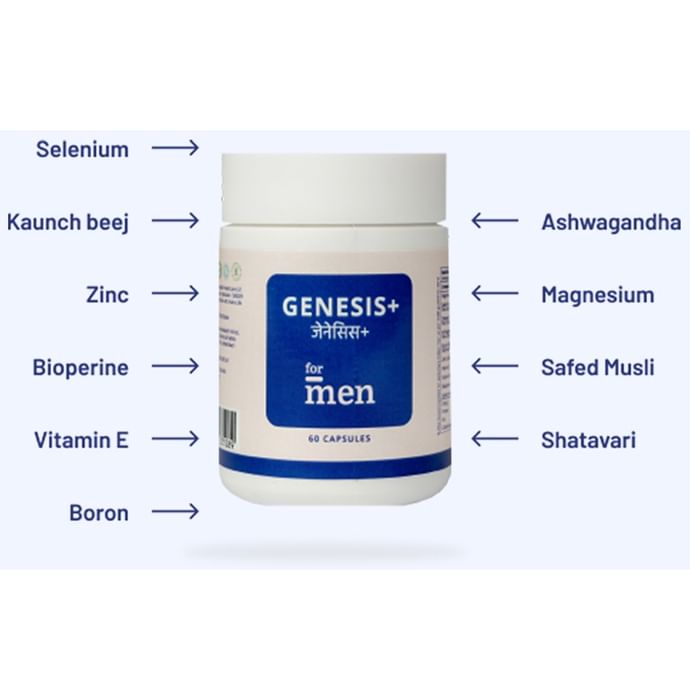ForMen Genesis+ Capsule ForMen Genesis+ Capsule is the proprietary blend of enriched herbal extracts, vitamins and minerals, This formula is specifically designed to enhance sperm quality and semen volume. It is specially formulated by doctors, pharmacologists and Ayurvedic experts.