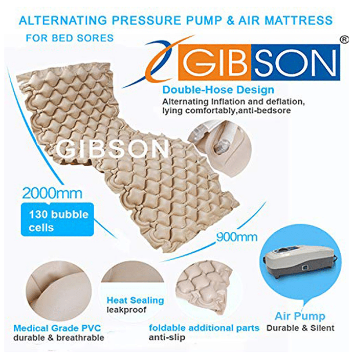 Gibson Anti Decubitus Mattress Gibson Anti Decubitus Mattress is crafted with high-quality material - medical grade PVC, which is durable and breathable. Its air pump is durable and silent. Besides, it is anti-slip and leakproof. The mattress is perfect for those suffering from injuries.