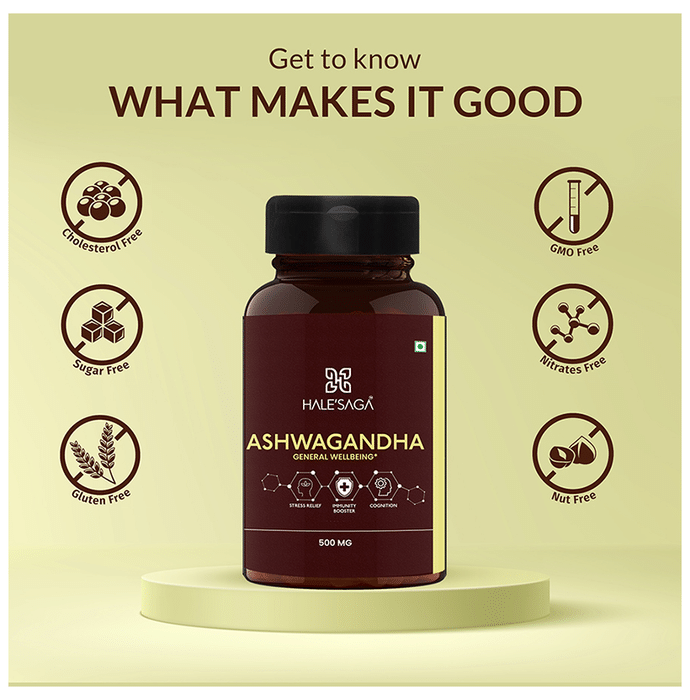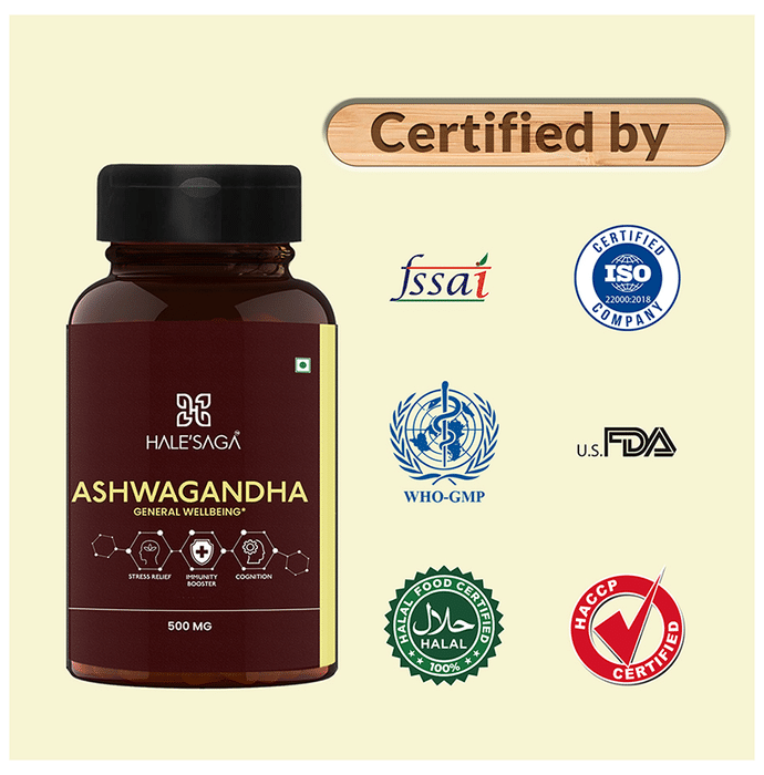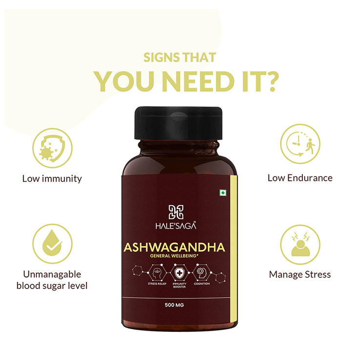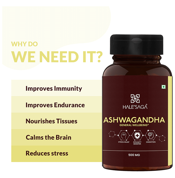 Halesaga Ashwagandha Veg. Capsule Halesaga Ashwagandha Immunity Booster Veg Capsules is made from rejuvenating herb that improves energy levels and manages stress. It is an age-old formulation that helps to boost the immune system and balance all the energies of the body. It can help to reduce stress and help to enhance vigour and vitality in men. It is a unique herb with anti-stress properties which leads to physical fitness.
