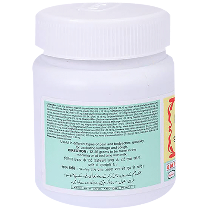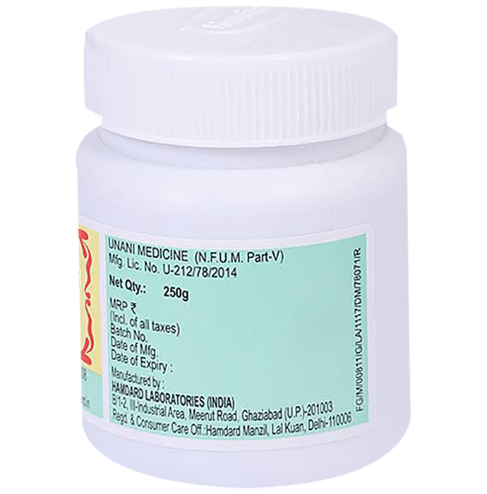 Hamdard Halwa Gheekwar is an ayurvedic formulation. The formulation is available in the form of a powder. It serves as a pain reliever and also helps to fight against infections such as cough. | Key Ingredients: Elaichi Khurd Taj Salab Misri Khulanjan Maghz Akrot Musli Sainbhal Gheekwar Sabz Ghee Shakar Safaid Khoya Khajoor Maida Gandum | Key Benefits: The preparation is indicated for the treatment and management of pain and bodyaches It has also been found to be effective in treating cough and lumbago | Directions For Use: One can take 12-25 grams in the morning or at bed time with milk or as directed by the physician | Safety Information: Read the label carefully before use Keep out of the reach of children Do not exceed the recommended dose