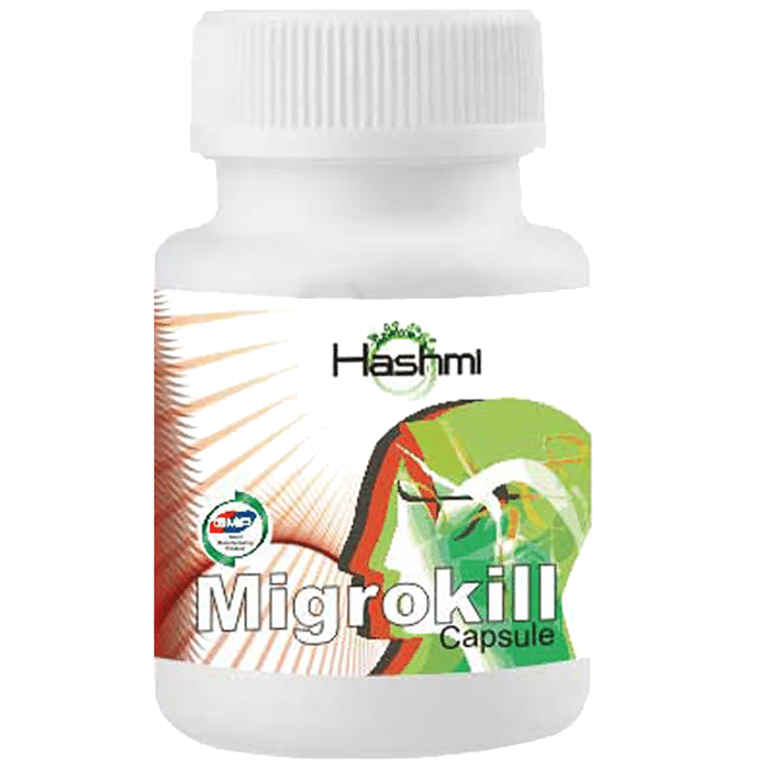 Hashmi Migrokill Capsule Hashmi Migrokill Capsule helps prevent migraine attacks and minimizes the frequency of nausea. It also improves overall body fitness.