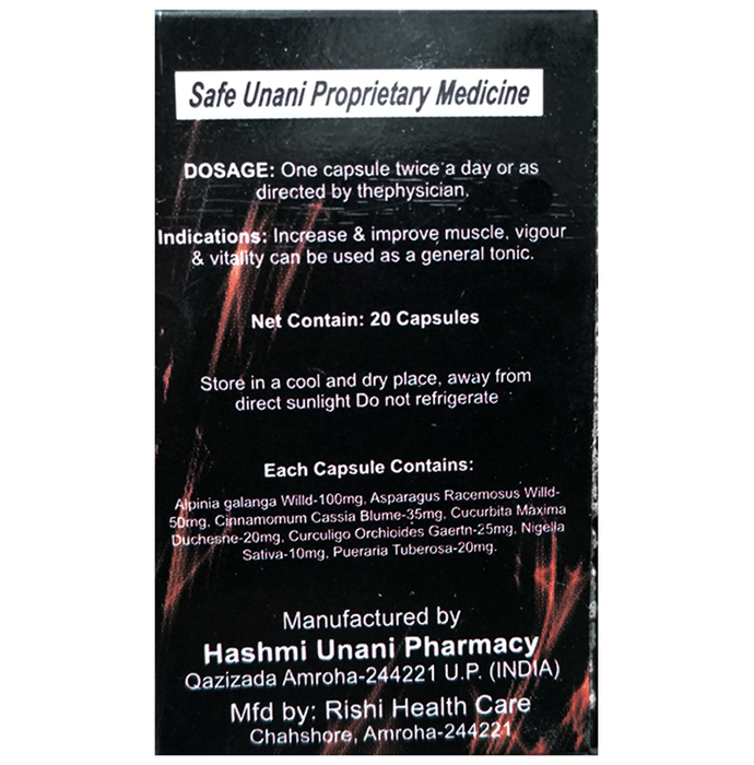 Key Ingredients of Hashmi Seks Max Power Capsule: Alpinia galanga 100 mg Asparagus racemous 50 mg Cinnamomum cassia 35 mg Cucurbita maxima Duchesne 20 mg Curculigo orchioids 25 mg Nigella sativa 10 mg Pueraria tuberosa 20 mg | Key Benefits of Hashmi Seks Max Power Capsule: Contains natural aphrodisiacs factors known to increase male sexual desire and performance Provides a fortress of energy and strength factors to stimulate excitement Reinvigorates male stamina and arousal to help improve and sustain performance Helps minimize premature or rapid ejaculation to maintain confidence, energy and stamina
