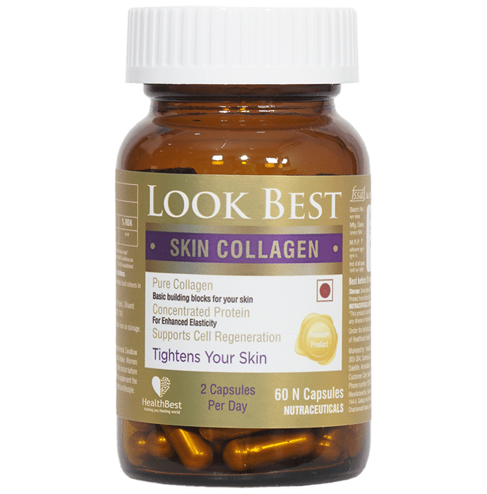 HealthBest | Lookbest Skin Collagen Capsule is formulated with collagen which is a structural, fibrous protein found in humans and animals, particularly in areas such as tendons, bones, skin and cartilage. It serves as a connective tissue that makes up roughly 30% of the human body's protein content, making it the most abundant source of protein in our bodies. Hydrolyzed Collagen is a processed form of collagen that is obtained by breaking down collagen fibres utilizing heat or caustic solutions. It contains 20 different amino acids, including 8 of the 9 essential amino acids. Essential amino acids cannot be created in the human body, which means that the only way our bodies can acquire them is through ingestion. | Key Ingredients: Hydrolyzed collagen Gelatine capsule | Key Benefits: Hydrolyzed Collagen (also known as Collagen Peptides) is becoming a very popular protein substitute. It is naturally found in humans and animals and is revolutionizing the way people consume and utilize the protein It is fat-free, cholesterol-free and easily digestible. Hydrolyzed Collagen is high in essential amino acids and is effectively zero allergenic Collagen is commonly used as a meal replacement for those who want to reduce weight It helps maintain blood sugar levels while providing essential amino acids, giving an immediate boost of energy. Hydrolyzed collagen is naturally caffeine-free Hydrolyzed collagen is a known advocate of healthier, smoother skin. In fact, a clinical study was conducted in 2012, involving 26 women with mild to moderately damaged skin | Directions For Use: 1 capsule per day or as directed. | Safety Information: Read the label carefully before use Keep out of reach of the children Store in a cool dry place This product is not intended to diagnose, treat or cure any diseases Comes with 24 months warranty