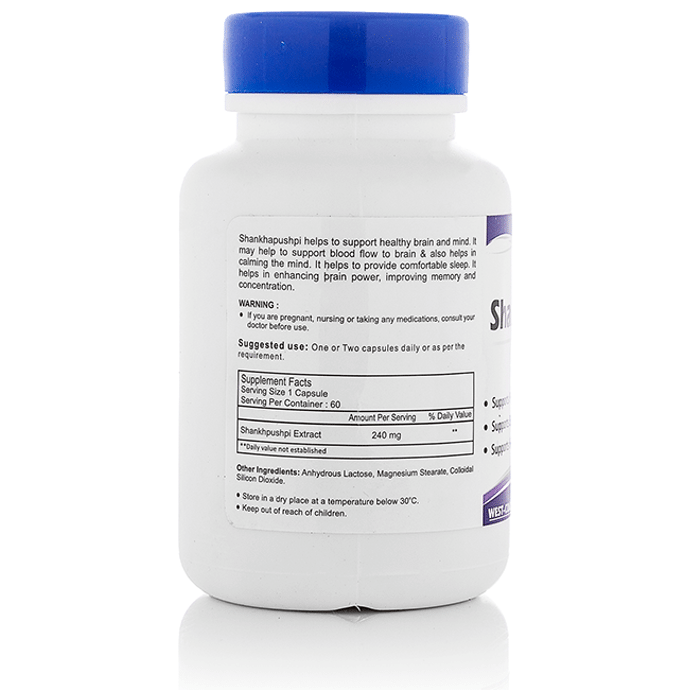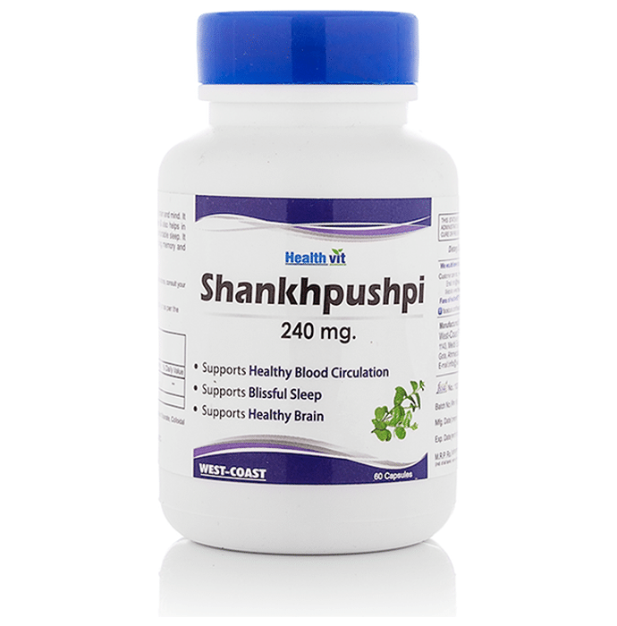HealthVit Shankhpushpi Pure Extract 240mg Capsule Healthvit Shankhpushpi 240mg capsule contains Shankhpushpi as its active ingredient. Key benefits of Healthvit Shankhpushpi 240mg capsule: It is used as a brain tonic, especially for children. It’s anxiolytic & anti-depressant activity helps in maintaining normal blood pressure. May act as Neuroprotective. May help to calm the nervous system. May help in cognitive brain function. Direction for use: As a dietary supplement for adults, take 1 or 2 capsules daily preferably at mealtime or as directed by health practitioner. Safety information: Pregnant, nursing women or individual taking any medications, consult the doctor before use. No artificial colour, flavours or preservative added, no chemical solvents. Use under medical supervision.