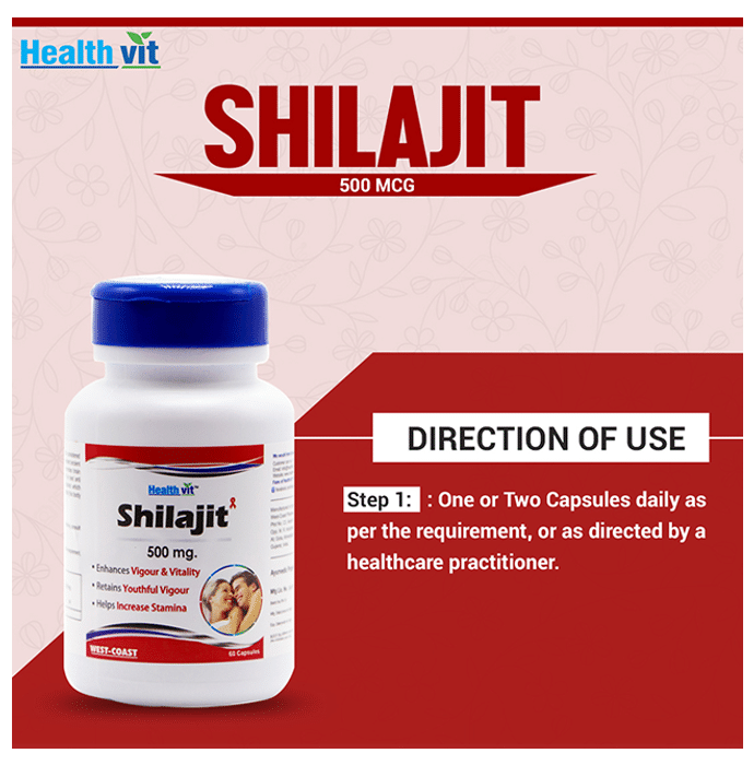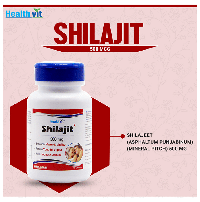 HealthVit Shilajit 500mg Capsule Healthvit Shilajit (Asphaltum Extract Powder) - Increase Vigor and Vitality - 500 Mg - 60 Capsules in formulated with an ayurvedic herb Shilajit, which has various health benefits.It is an effective remedy for weakness. It not only helps in improving energy but also rejuvenates the body. Enriched with antioxidants, it helps in reducing stress and has a revitalizes the body.
