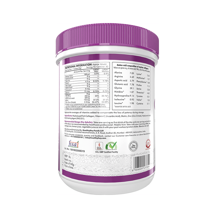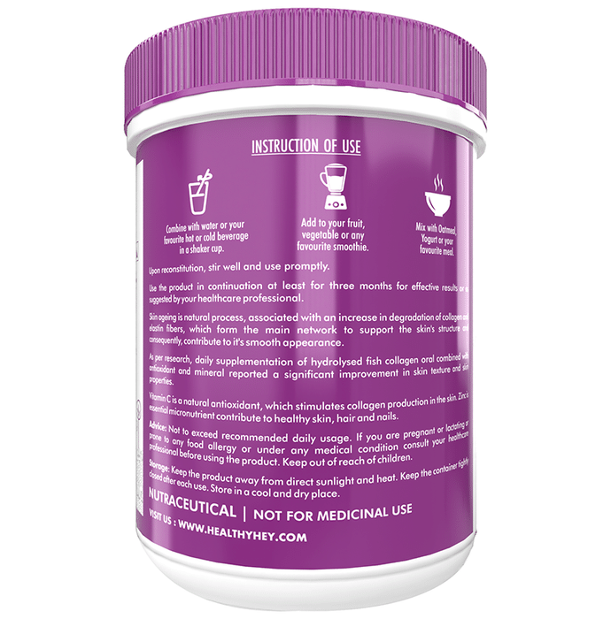 HealthyHey Nutrition Hydrolysed Fish Collagen+ Unflavoured HealthyHey Nutrition Hydrolysed Fish Collagen+ is a complex structural protein that helps you to maintain the strength and flexibility of skin, ligaments, joints, bones, muscles, tendons, blood vessels, gums, eyes, nails and hair.