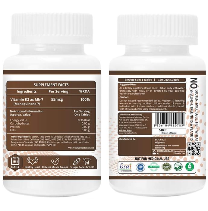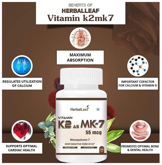 HerbalLeaf Vitamin K2 as MK 7, 55mcg Tablet HerbalLeaf Vitamin K2 as MK 7, 55mcg Tablet provides you with proper nutritional supplementations that are key nutrients for strong bones and teeth. It is a natural and effective way of caring for your health, infused with the goodness of vitamin k2 mk-7.