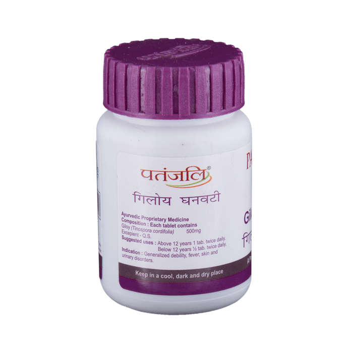 Immunity Care Combo of 1mg Panch Tulsi 30ml Drops and Patanjali Ayurveda Giloy Ghanvati 60 Tablet Patanjali Ayurveda Giloy Ghan Vati (Patanjali Ayurved Limited) Patanjali Ayurveda Divya Giloy Ghan Vati contains Giloy (Tinospora cordifolia) as active ingredient. Key benefits/uses of Patanjali Ayurveda Divya Giloy Ghanvati: - Used for the treatment of general weakness, recurrent infections, immuno-deficiency disorders, appetite loss, chronic constipation with mucus in the stool, common cold, high cholesterol, hepatitis, jaundice and other liver disorders and various autoimmune disorders