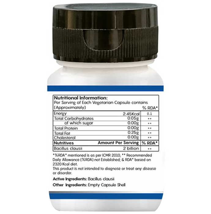 Immunobasics Bacillus 2 Billion Vegetable Capsule Immunobasics probiotic supplements for the treatment of diarrhoea and its symptoms in adults. It contains 2 billion spores of poly-antibiotic-resistant bacillus clausii, a friendly bacterium usually present in the gut. It helps in the treatment and prevention of diarrhoea caused by various infections and is equally efficient in restoring the normal microbial flora of the intestine. Taking antibiotics can all cause a microbial imbalance in the gut, leading to short-term implications such as diarrhoea, abdominal pain, vomiting and long-term implications being a higher chance of asthma, obesity and higher susceptibility to infections. About 70% of the immunity comes from a healthy gut, which means a healthy digestive system is vital to ensure a healthy life. | Key Ingredients: Bacillus clausii Empty capsule shell | Key Benefits: Bacillus clausii present in these capsules can be helpful in stopping travelling diarrhoea and diarrhoea associated with antibiotic therapy These capsules can be helpful in boosting the body’s immunity It can be beneficial for restoring bowel functions and helps in the treatment of chronic diarrhoea This vegetable capsule can promote and replenish gut bacteria It is useful for infections in intestines and provides relief from chronic gastrointestinal disorders | Directions For Use: One or two veg capsules a day or as recommended by the healthcare professional. | Safety Information: If you are pregnant or nursing, consult your healthcare professional before using this product Read the label carefully before use Store in a cold and dry place Keep away from the reach of children