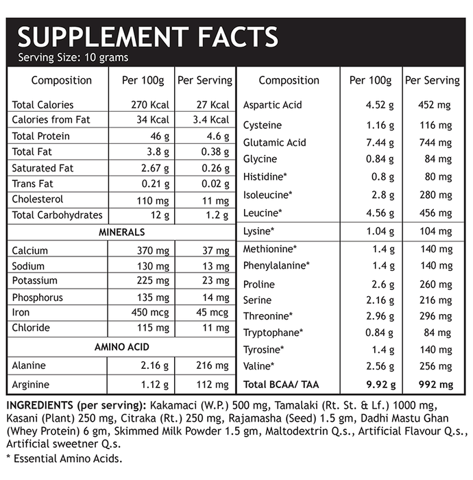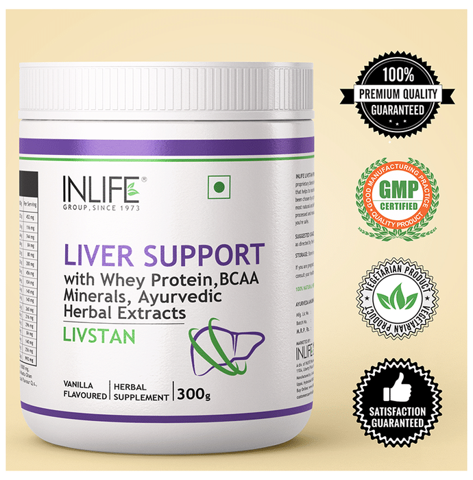 Inlife Livstan powder is enriched with Whey protein. It is a herbal comprehensive liver support formula, containing a synergistic combination of whey protein and ayurvedic herbs that supports optimal liver health. It is a powerful antioxidant, free radical scavenger and detoxifier that promotes liver toxin removal. Key benefits: It supports liver function and health. It works as powerful antioxident and helps in liver toxin removal. Safety Information: Pregnant or lactating women, nursing, diabetics and people with known medical conditions should consult with a physician prior to taking dietary supplements. Direction of use: Take 10 grams (2 teaspoons) twice daily with water/milk or as directed by the healthcare professional. Use under medical supervision
