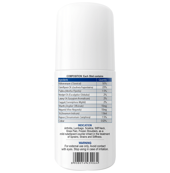 Jagat Pharma ISO Pain Relief Roll On has been developed after a decade of careful research. Blended with the right mix of medicinal plants, this 100% Ayurvedic formulation is the go-to cure for all muscle and joint pain issues. Our topical formula penetrates the skin faster, reaching the root cause of pain to offer soothing relief within seconds. The ISO Pain Relief roll-on absorbs quickly and is easy to apply and carry, ensuring fast and long-lasting relief. | Key Ingredients: Mahanarayan Gandhpura oil Pudina Nilgiri oil Laung oil Guggal Shunth Nirgundi Til Kapoor | Key Benefits: Relieves joint and muscle soreness and tightens loose muscles Reduces pain by improving blood circulation and reducing stiffness Full of topical anti-inflammatory and analgesic properties Quickly penetrates the skin to eliminate the root cause of pain, offering complete wellness Roll-on packaging, quick absorption and non-sticky properties make it easy to apply Improves muscle and joint health without any side effects | Directions For Use: For best results, use this roll-on over the affected area 2-3 times a day. | Safety Information: Read the label carefully before use Keep out of reach of children Store in a cool and dry place away from direct sunlight