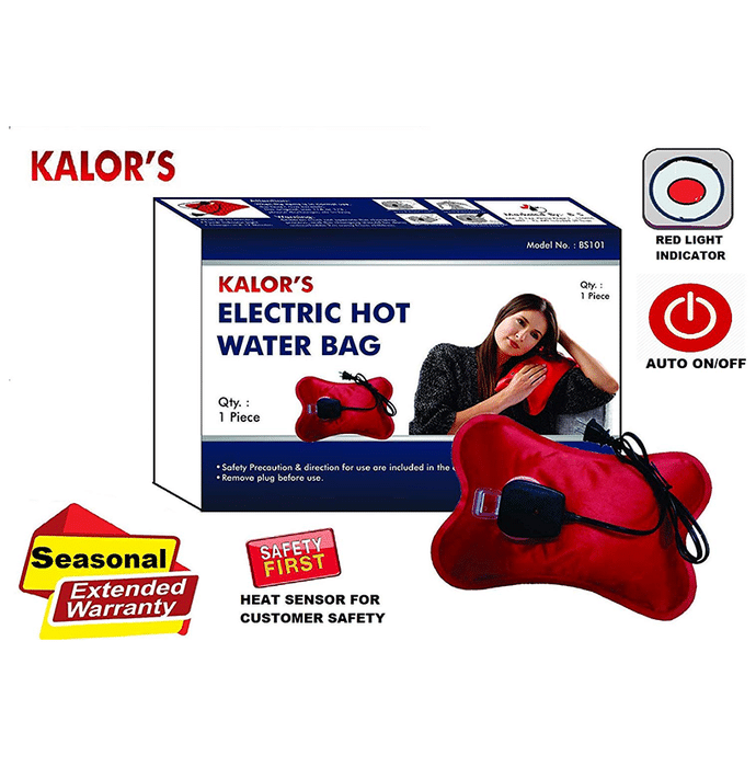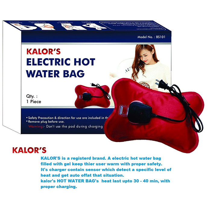 Kalor Rechargeable Electric Hot Water Bag with Gel Multicolor is an electric hot water bag filled with a gel that provides warmth and comfort. It can provide relief from pains and aches. | Uses: It is a rechargeable gel hot water bag used as a hot compress to soothe muscle aches and discomfort. | Product Specifications and Features: Package dimensions: 26.4 x 18 x 5.8 cm; 1.3 kilograms It comes with an auto shut-off feature It has a red light indicator that turns on while charging | Good to Know: Can be used as a body warmer | Directions For Use: Insert the power cord into the socket and connect it to the power A red light (indicator) turns on immediately, showing the heating is in process After 3-4 minutes, the indicator switches off automatically Heat pad is ready to use | Safety Information: Read the label carefully before use Do not use while charging Remove the plug before use | Frequently Asked Questions: | What is the use of gel hot water bags? Gel hot water bags are a convenient way to perform heat therapy and provide relief from pains, aches, cramps and stiffness. | Can we sleep using a hot water bag? To avoid burns and injuries, remove the hot water bag before sleep.