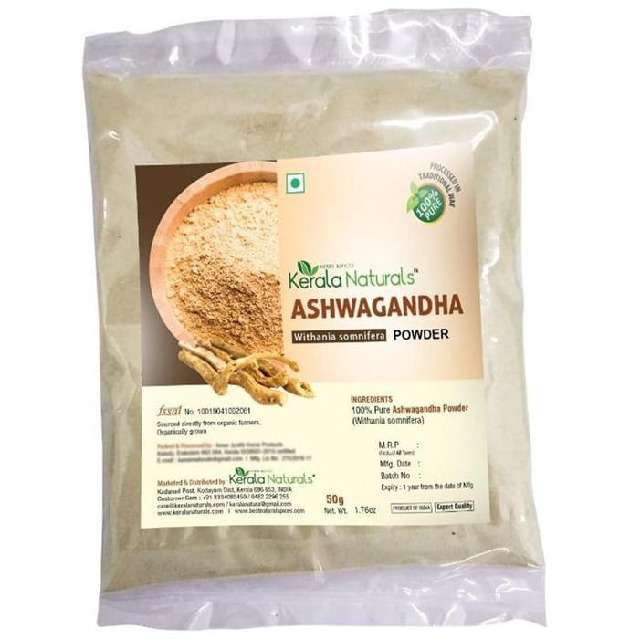 Kanan Naturale Ashwagandha Powder Ashwagandha, also known as Indian ginseng, is a famous balancing herb that's been used around the world for centuries to support stress relief and encourage energy. This herb is one of the most important herbs in the Ayurvedic medicine system. Ashwagandha helps in improving the immune system and stamina along with enhanced energy levels. | Key Ingredients: Ashwagandha | Key Benefits: It can reduce anxiety and stress, help fight depression, boost fertility and testosterone in men and even boost brain function Ashwagandha helps to improve stamina and energy levels as well as provide relief from weakness and stress It has been used for centuries as a general body tonic, as it makes one feel stronger and healthier Kerala Naturals Ashwagandha powder is 100 % pure and natural and export quality product which is safe to take internally | Directions For Use: Use as directed on the label. | Safety Information: Keep out of the reach of children Store in a cool and dry place Read the label carefully before use