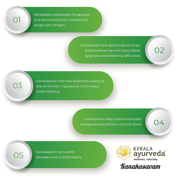 Kerala Ayurveda Kanakasavam Kerala Ayurveda Kanakasavam is a liquid Ayurvedic medicine, widely used in treating asthma, cough and fever. It contains 5 – 10 % self generated alcohol that acts as a media to deliveractive herbal components to the body.