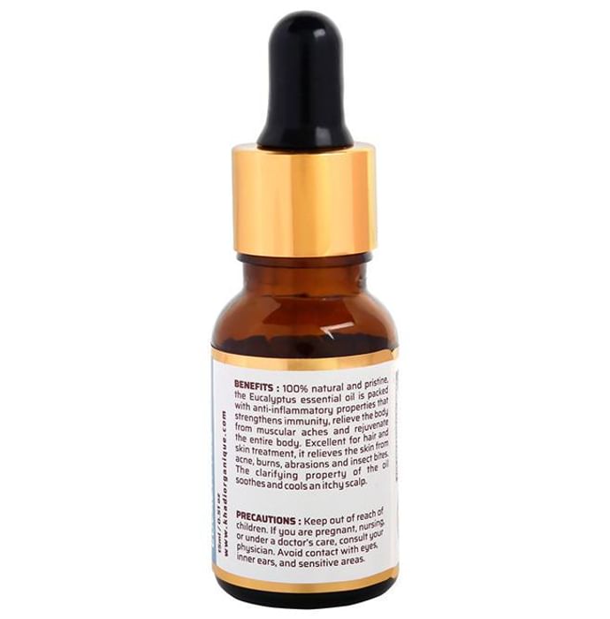 Khadi Organique Eucalyptus Essential Oil Khadi Organique Essential Oil is designed for aromatherapy and is also helpful in the case of migraines, nervous tension, anxiety and fatigue. The oil promotes healthy hair and skin. In addition to this, it comprises of antioxidant, anti-inflammatory, astringent and antimicrobial properties.